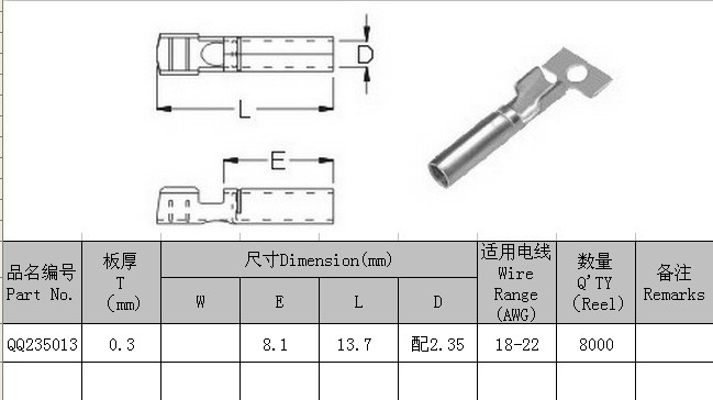 东莞市秦洋五金塑胶制品有限公司联系人:董小姐 15818368878 史先生 13926801585电话:0769-83209161传真:0769-83209162邮箱:qyang888@163.com网址:www.qy-terminal.com地址:东莞市大朗镇大井头社区盈丰路7号